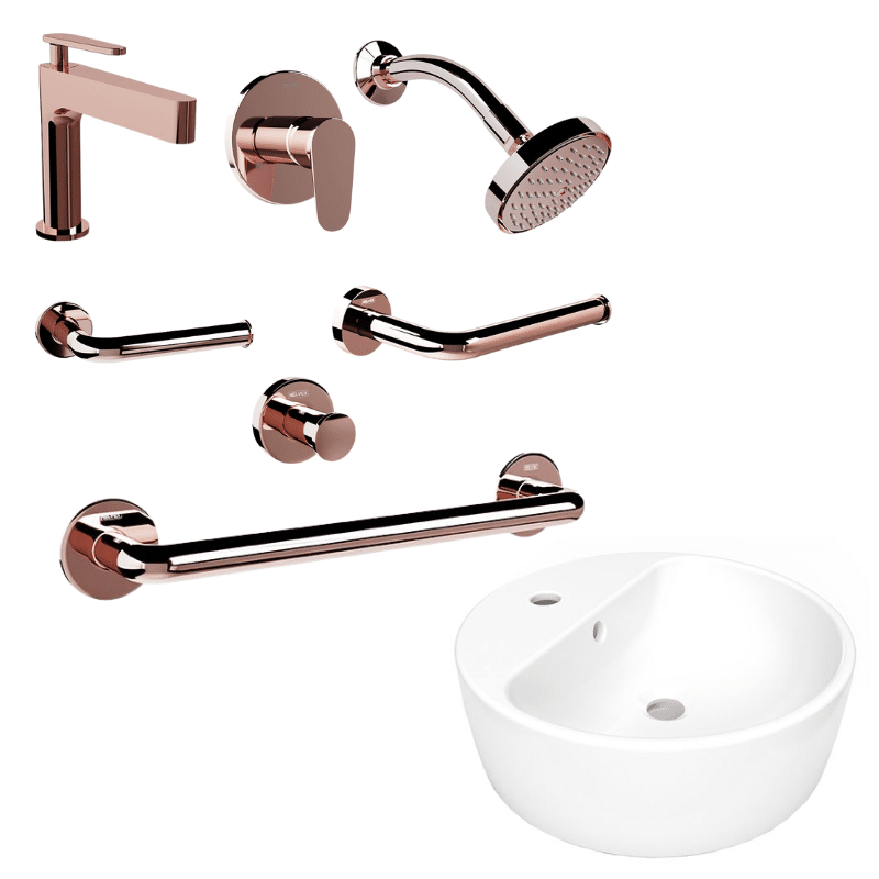 Paquete Aura Morea Monomando + Regadera + Accesorios y Lavabo Helvex AURA-MOREA1
