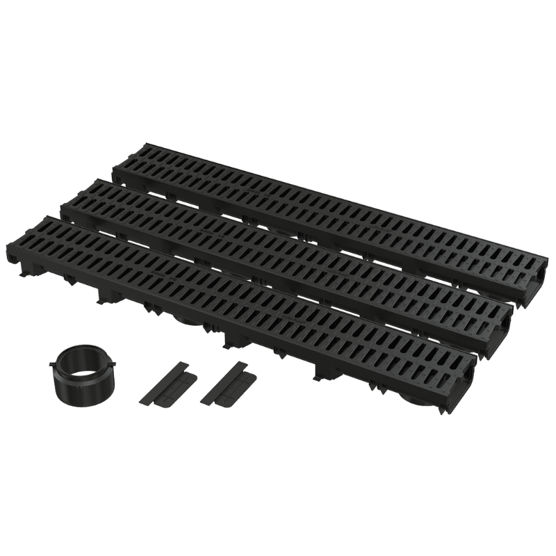 Drenaje Tipo Canal con Rejilla de Polipropileno para Garage 3 Piezas de 1 Metro Alcaplast AVZ112-G501