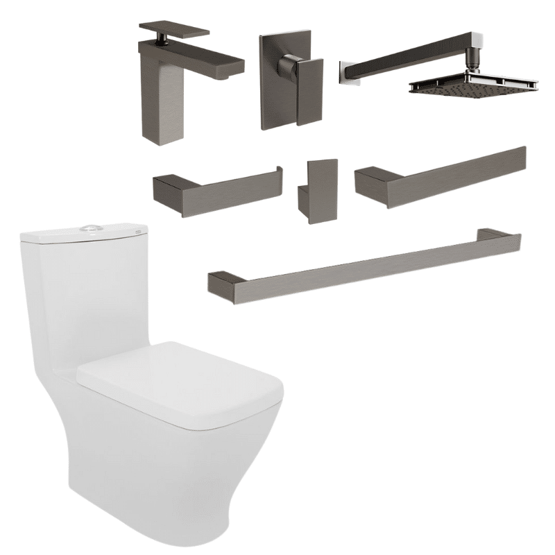 Paquete Titanium Capri Plus Monomandos + Regadera + Accesorios y WC One Piece Helvex TITANIUM-CAPRI P