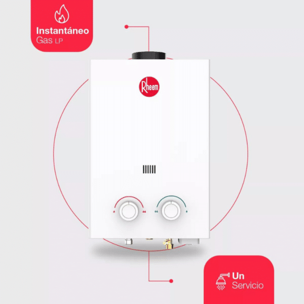 Calentador Instantáneo de 6 Litros/Min Gas LP 1 Servicio Rheem RHE-CHN06P