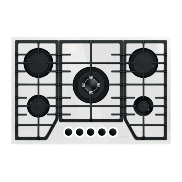 Parrilla Cristal Templado Blanco de 5 Quemadores Empotrable 76cm Nuur PARGA5VTB-L
