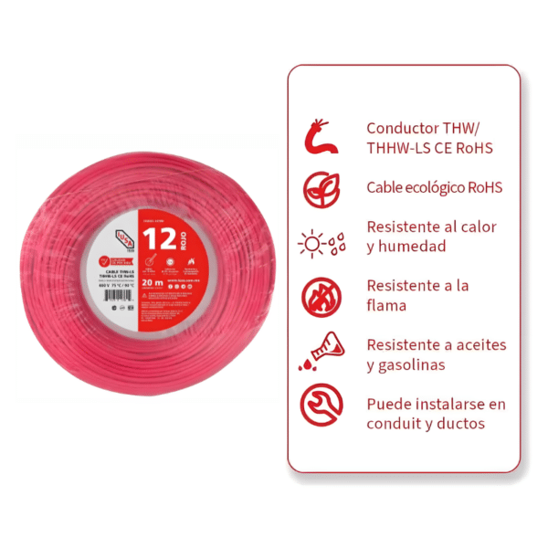 Cable THW-LS/THHW-LS CE RoHS Calibre 10 AWG Rojo 20 Metros IUSA 267286