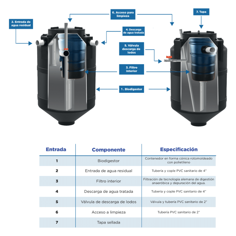 BioHidro de 1300 Litros con Contenedor de Lodos de 100 litros IUSA 267361/267251