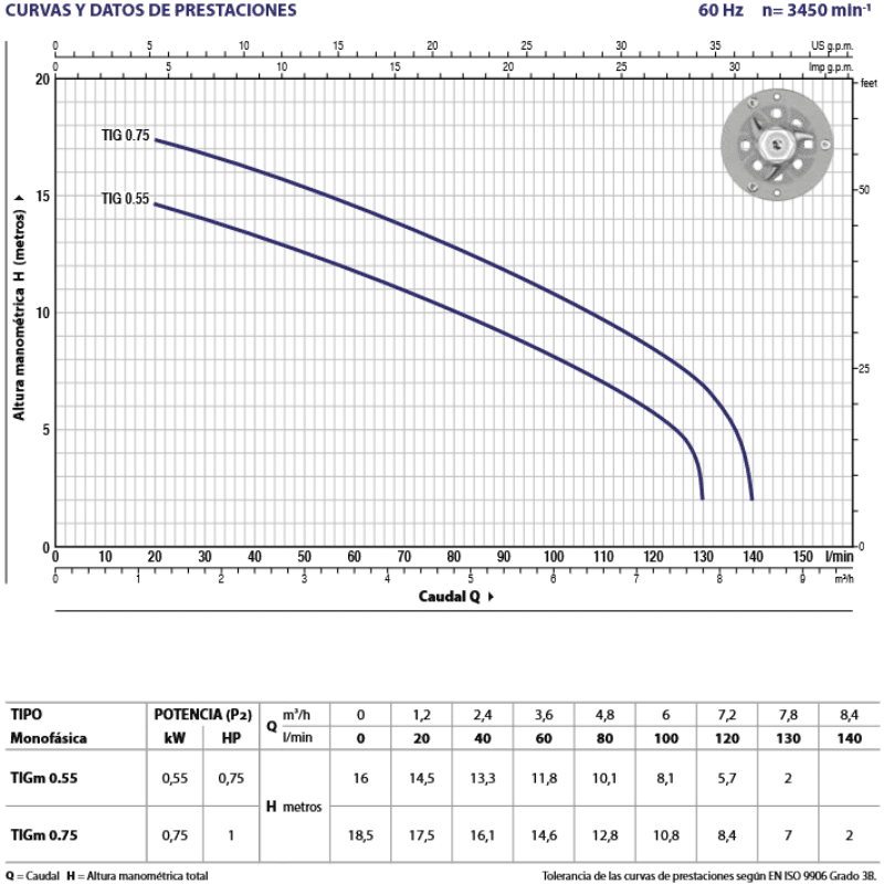 | Potencia | 1 HP / 0.75 kW |