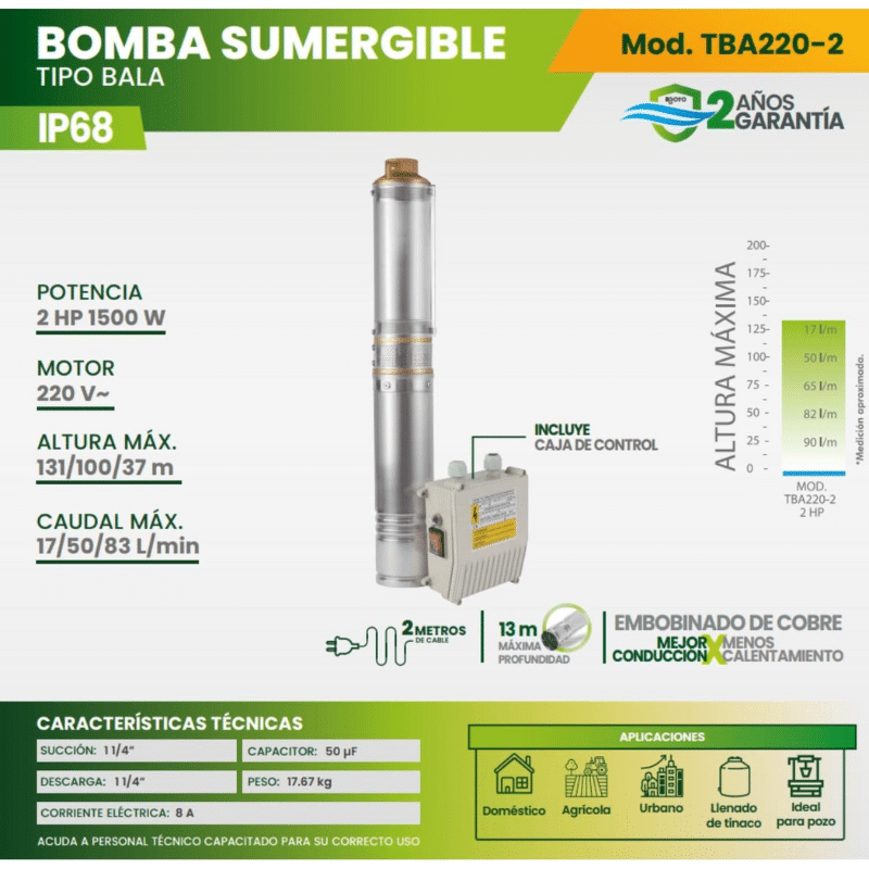 - Aplicaciones: domestico, agrícola, urbano, llenado de tinaco, ideales para pozo