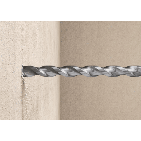 - La flauta de gran volumen transporta rápidamente el polvo de la perforación, lo que reduce el desgaste