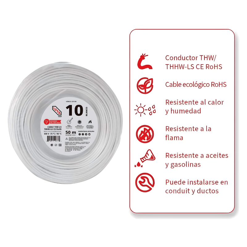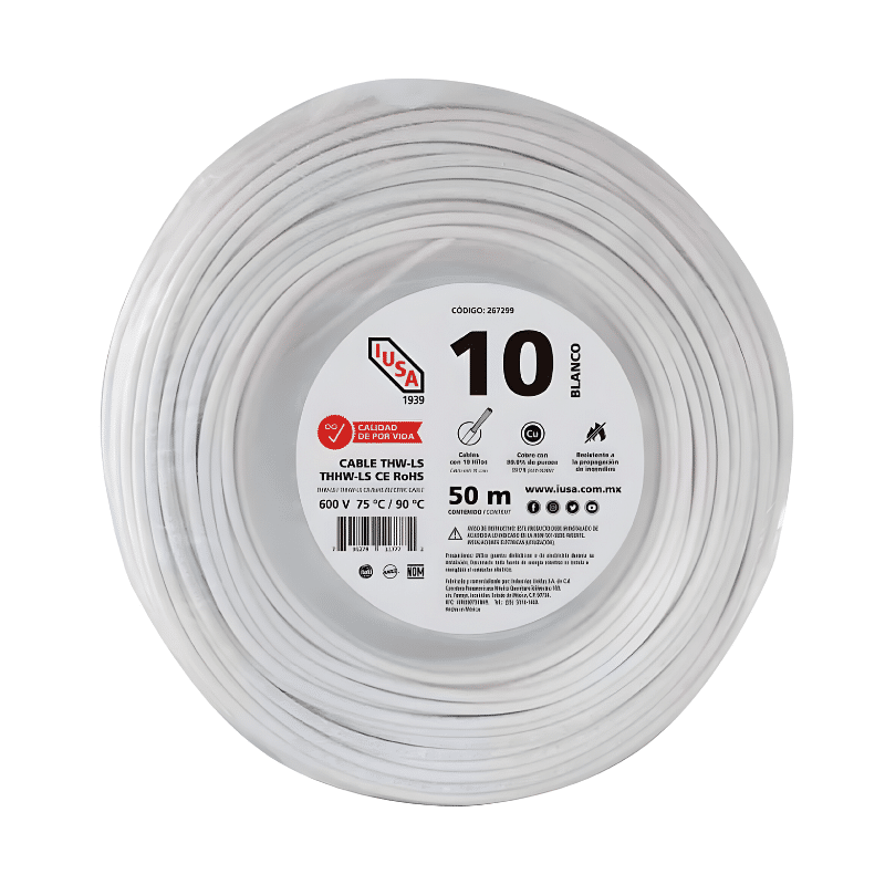 Cable THW-LS/THHW-LS CE RoHS Calibre 10 AWG Blanco 50 Metros IUSA 267299