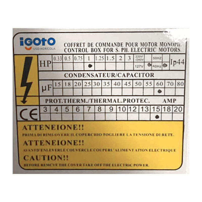 Caja de Control para Bomba de 1 HP 127V 15A Igoto REF-39