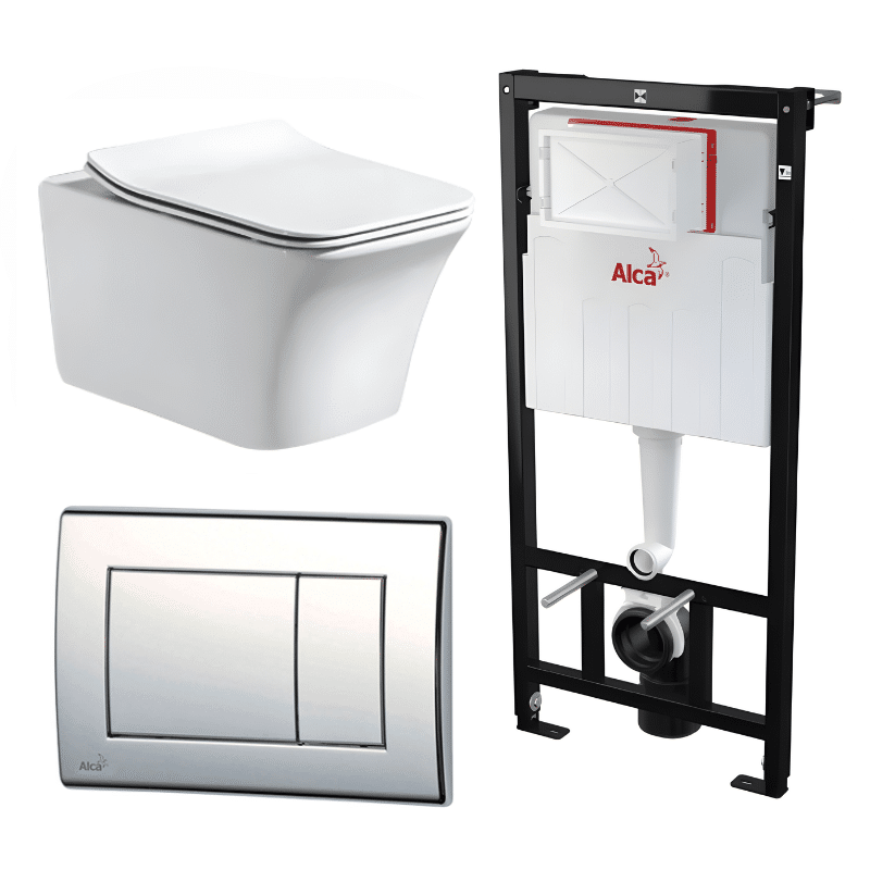 Kit Tanque Oculto A101, Taza Suspendida WC012 y Pulsador M271 Tecnobath-Alcaplast PWCS14-SADRO