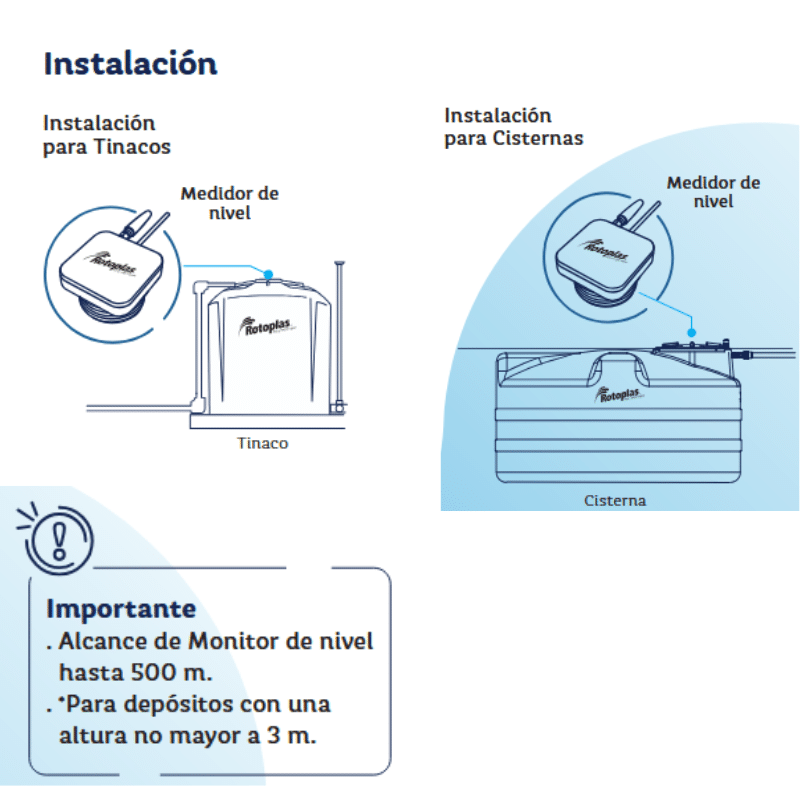 - Monitoreo constante del nivel mediante la aplicación Rotoplas