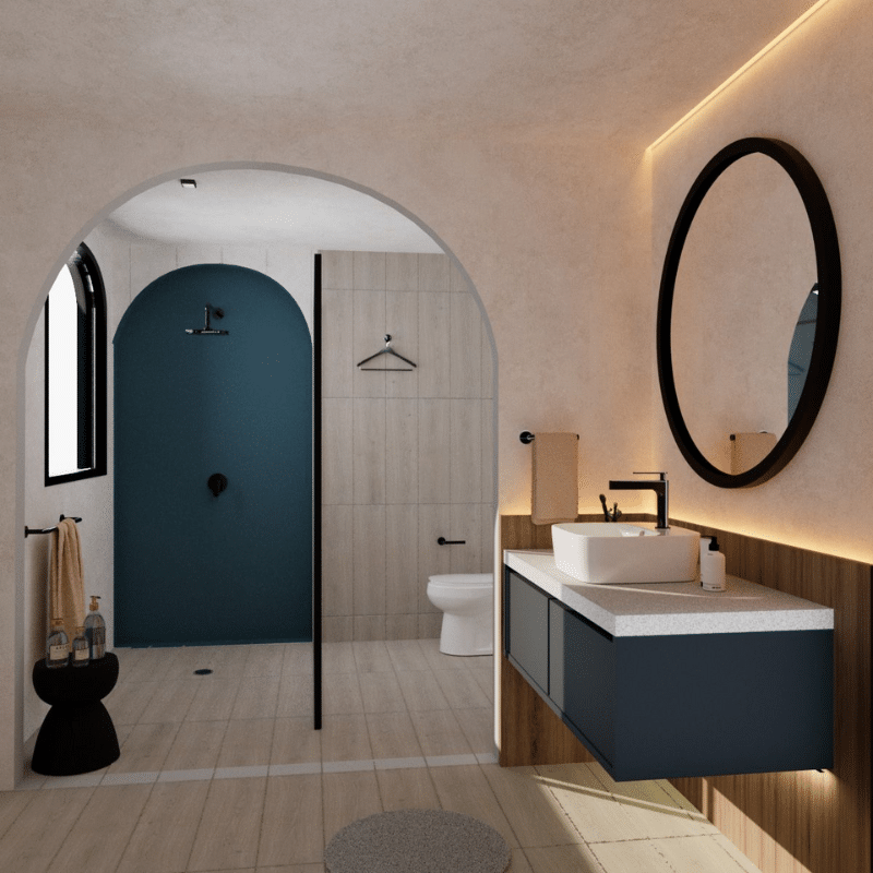 Paquete Obsidiana Santorini Monomandos + Regadera + Accesorios y Lavabo Helvex OB-SANTORINI1
