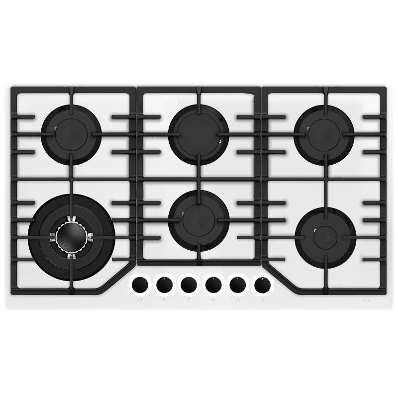 Parrilla Cristal Templado Blanco de 6 Quemadores Empotrable 90cm Nuur PARGA6VTB-L