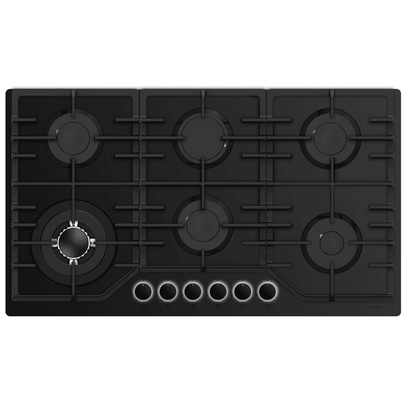 Parrilla Cristal Templado Negro Mate de 6 Quemadores Empotrable 90cm Nuur PARGA6VTM