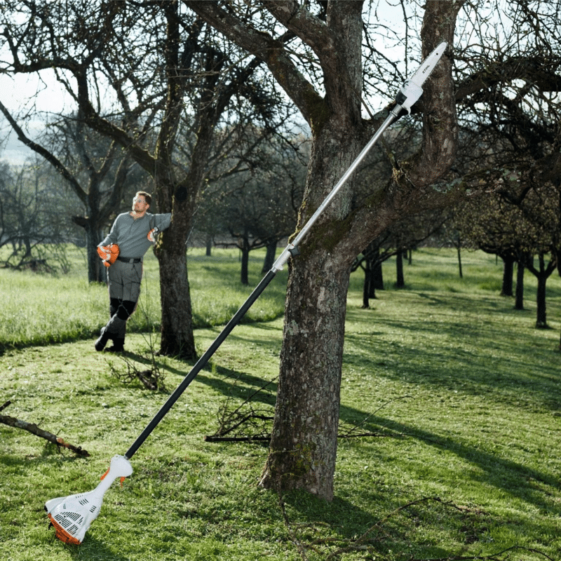 - Su potente motor STIHL 2-MIX permite a propietarios de terrenos y jardineros cortar árboles a alturas considerables