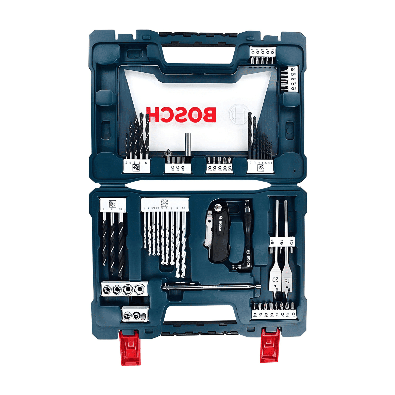 - 8 Brocas para Metal Ø2/2/2,5/3/3/4/5/6mm; 9 Brocas para Concreto Ø4/5/5,5/5,5/6/6/7/8/10mm; 8 Brocas para Madera Ø3/4/5/6/6/7/8/10mm; 2 Brocas de Fresa Plana Ø16/20mm 29 Puntas 25mm: PH0, PH1, 2x PH2, PH3, PZ0, PZ1, 2x PZ2, PZ3, S4, S5, S6, S7, 2x T10, 2x T15, 2x T20, 2x T25, 2x T30, T40, HEX Ø3/4/5/6mm; 1 barra magnética, expansible; 1 najava de bolso; 1 destornillador angular; 1 soporte de Puntas universal magnético; 6 llaves de caja Ø6/8/9/10/11/13mm; 1 Adaptador para llave de caja; 1 avellanador